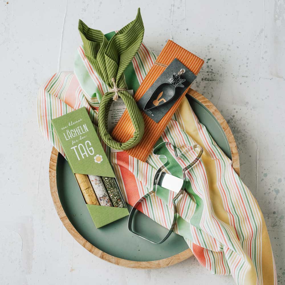 Ostergeschenk Set: Geschirrtuch mit Osterausstecher und Rezept