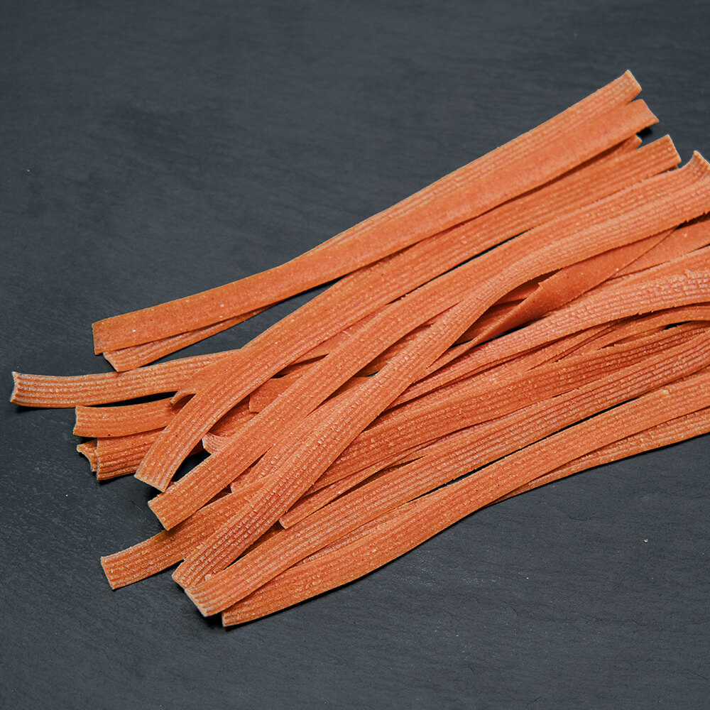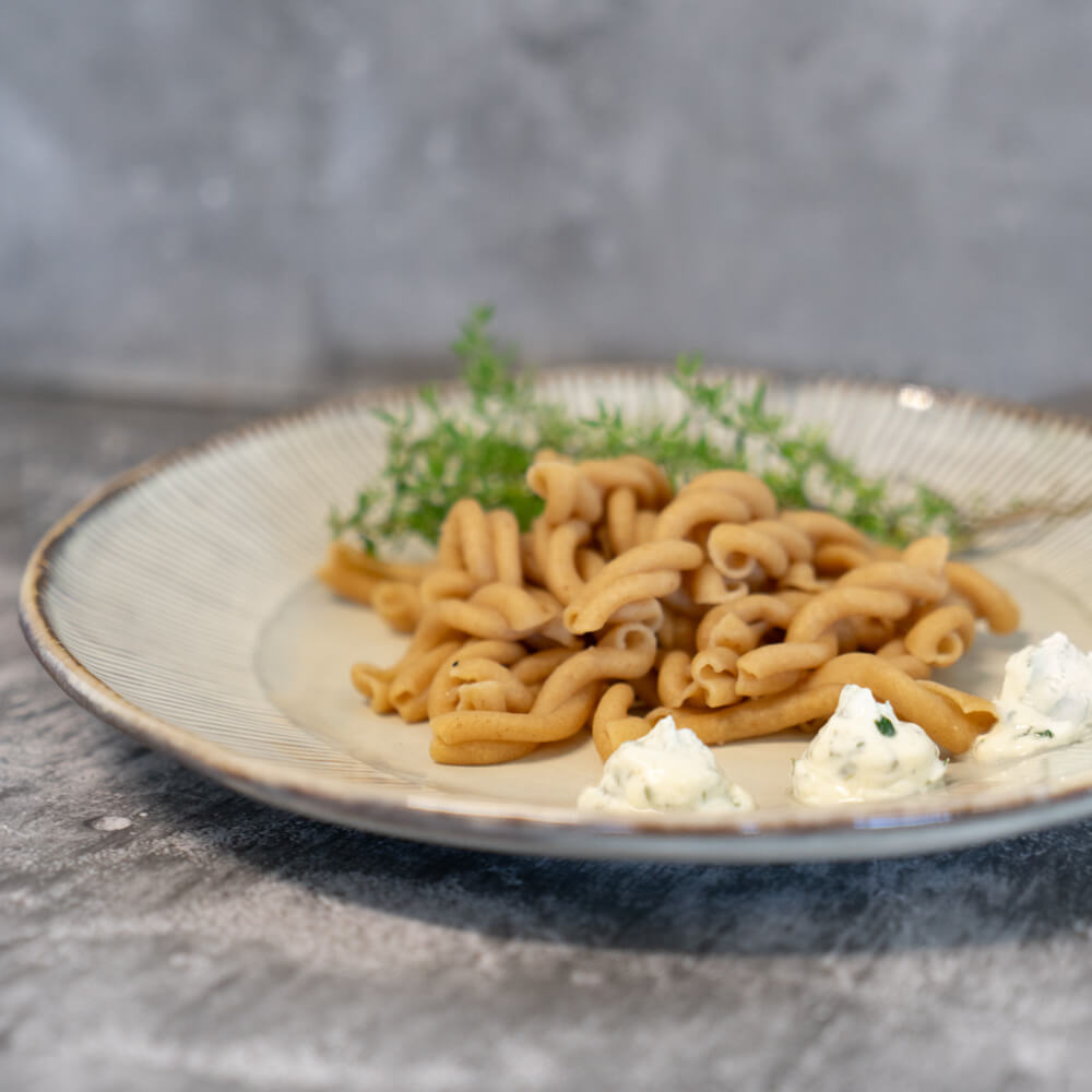 Hartweizen hat einen hohen Glutengehalt (Kleberprotein) und eine hohe Kochfestigkeit, was Ihren Nudeln den optimalen Biss verleiht. Durch seine gelben Pigmente erhält er seine goldgelbe Färbung, welche auch bei der Nudelproduktion erhalten bleibt. Wichtig ist, dass der Hartweizen sehr fein vermahlen ist. Discountergrieße für z.B. Grießklöße eignen sich nicht, deshalb empfehlen wir unseren speziellen, fein vermahlenen Hartweizengrieß für die Herstellung Ihrer Nudeln.