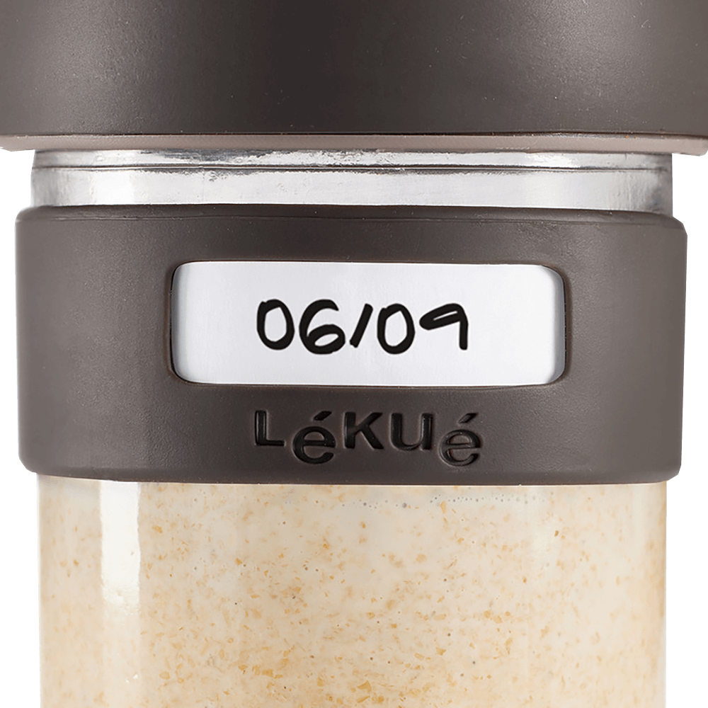 - Silikonband zur Beschriftung – vermerke unkompliziert Datum oder Mehlsorte direkt am Glas