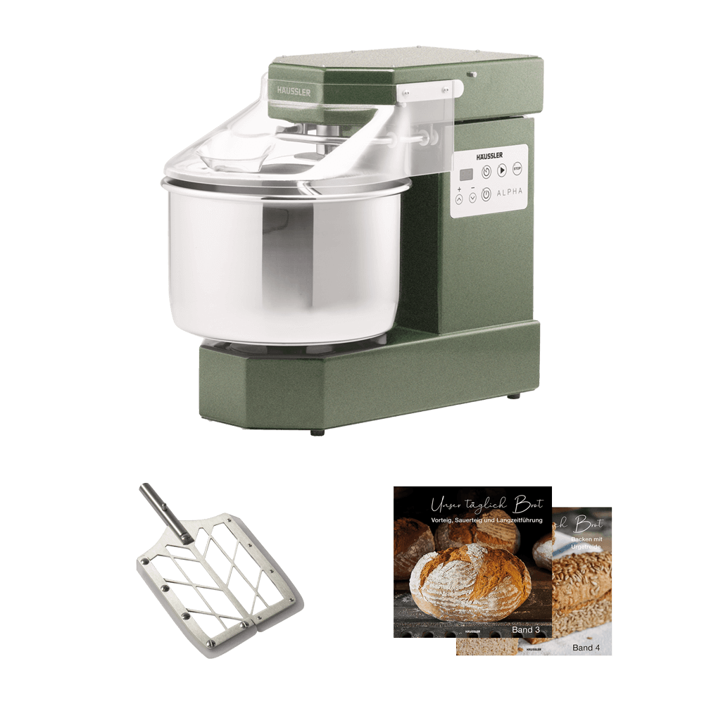 Das ALPHA 1G Starterpaket mit 1 Rührpaddel und zwei Häussler Backbüchern.