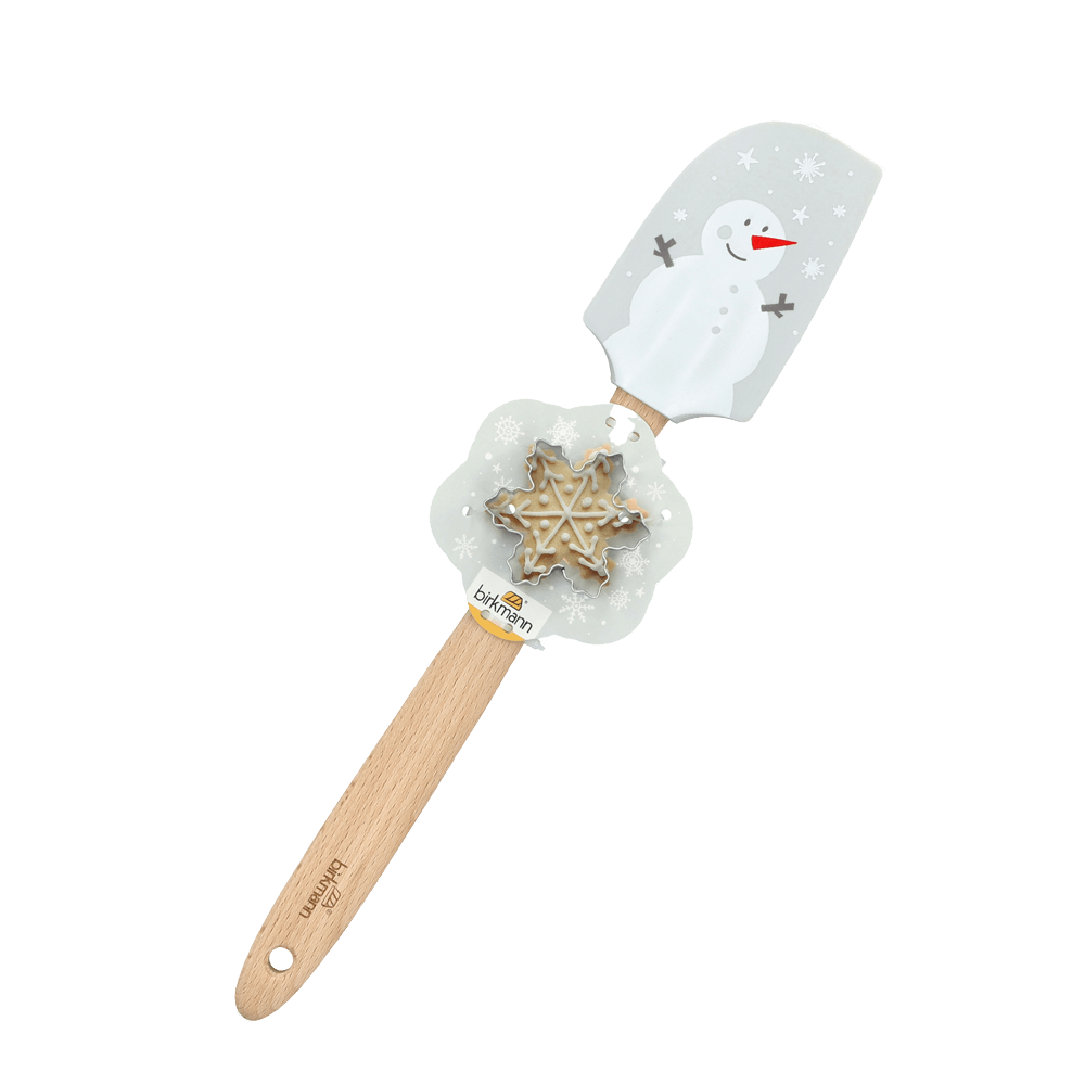 Der Teigschaber mit Motiv und Ausstecher ist der ideale Helfer in jeder Küche – zum Rühren, Schaben und Ausstechen von Teig.