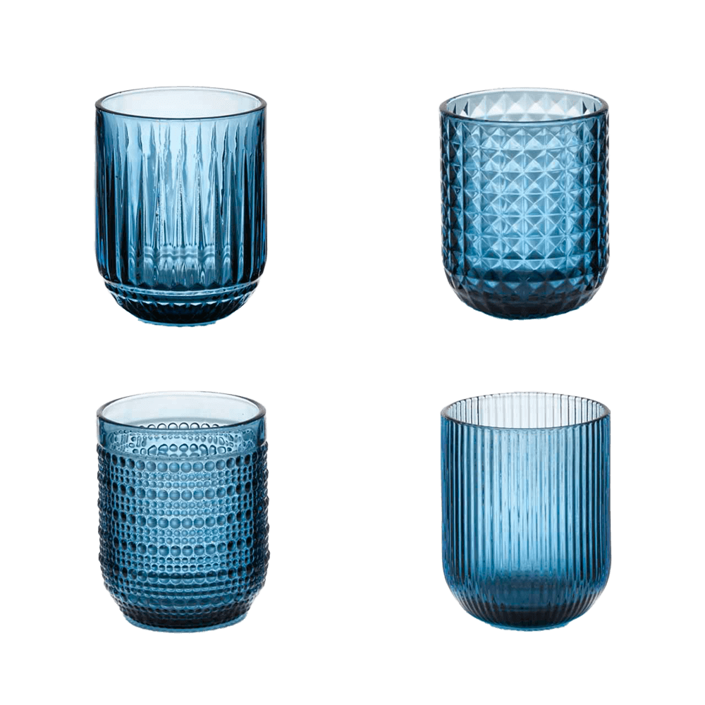 Jedes Glas begeistert mit einem individuellen Reliefmuster – von feinen Rillen über filigrane Waben bis zu edlen Facetten – und wird so zum echten Blickfang bei jedem Anlass.