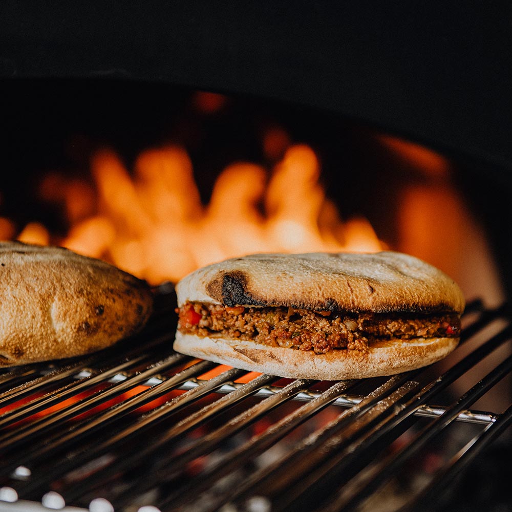 Für die Füllungen die Zutaten waschen, schneiden, vermischen und in einer Pfanne anbraten. Die Snacktaschen aufschneiden und beliebig füllen. Zum Schluss auf den Grill legen, bis sie gut knusprig sind.