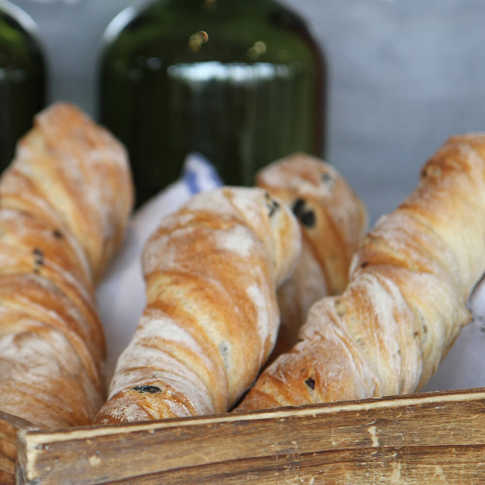 Alle Zutaten in der Teigknetmaschine oder von Hand zu einem weichen, geschmeidigen Teig kneten und abgedeckt etwa zwei Stunden ruhen lassen. Anschließend in vier Portionen teilen, diese in etwas Mehl wenden und zu 25 cm langen Stangen „zwirbeln“. Die Stangen weitere 10 Minuten auf einem bemehlten Brett ruhen lassen, anschließend backen.